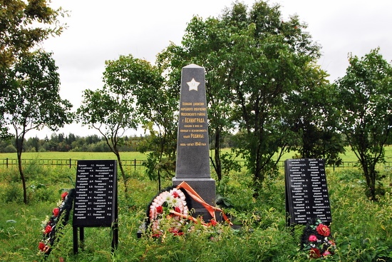 Виктор Костюкович: “191 Стрелковая Дивизия в 1941 и 1944гг вела боевые действия в нашем районе почти везде. Останки бойцов 191 СД находили во многих местах. Прилуга, Новопятницкое, Ивановское, Хорошего, Ивангород, Кошкино, Нежново, Долгая, Кингисепп. Всего примерно около 100 человек. Установлено 45 имен.”